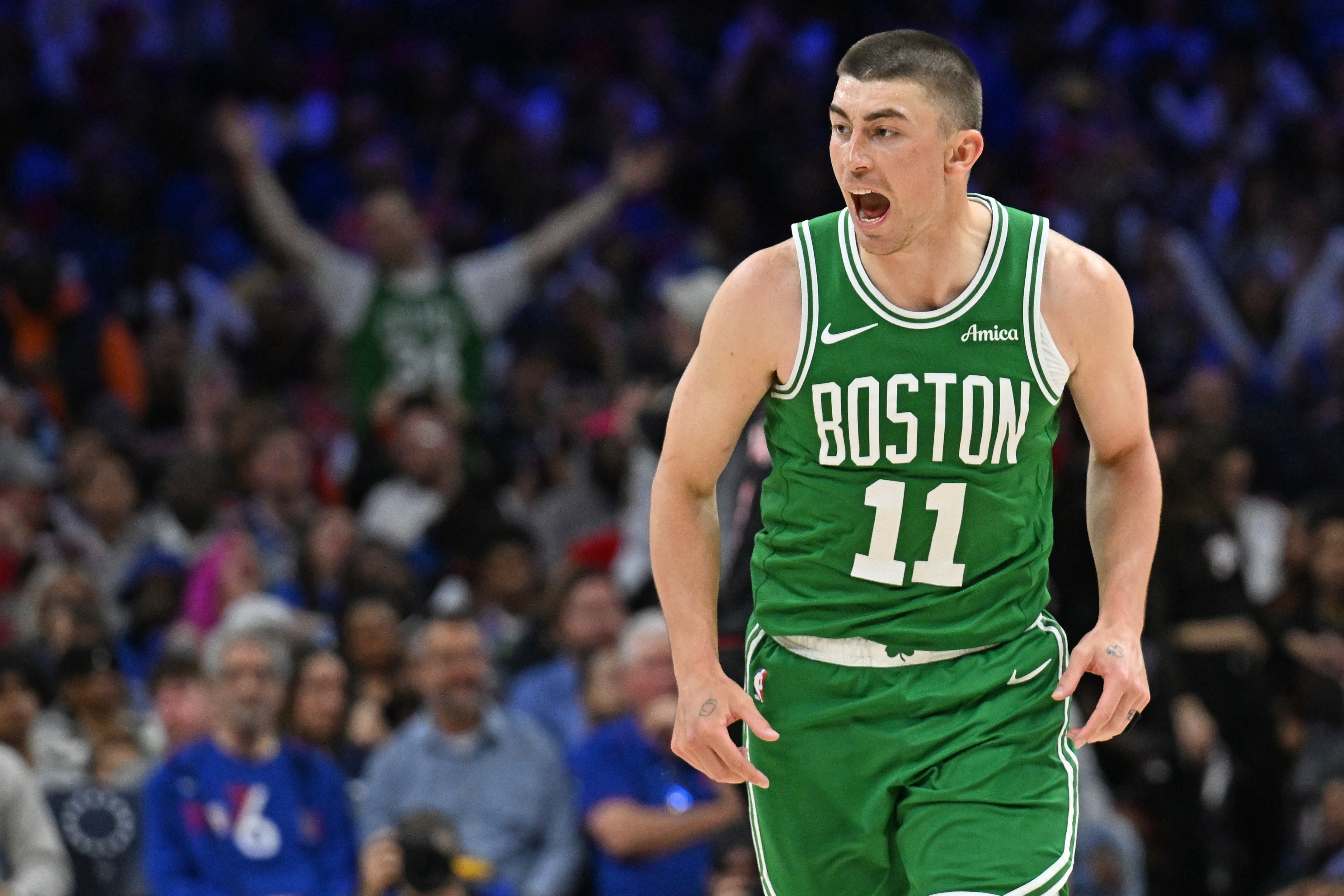 上半场,凯尔特人球员普理查德表现出色,进攻端火力全开,得分刷新个人季后赛半场新高,首节就轰下13分,打了18分半,投篮12中7,三分球8中4,砍下18分4篮板1助攻1抢断,正负值+17。